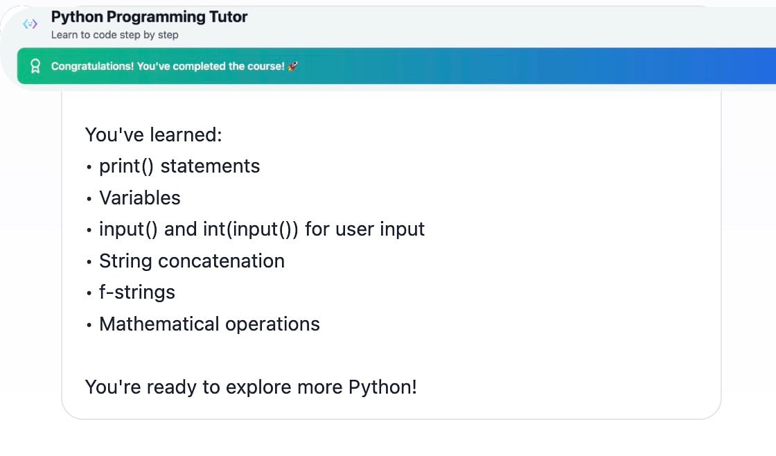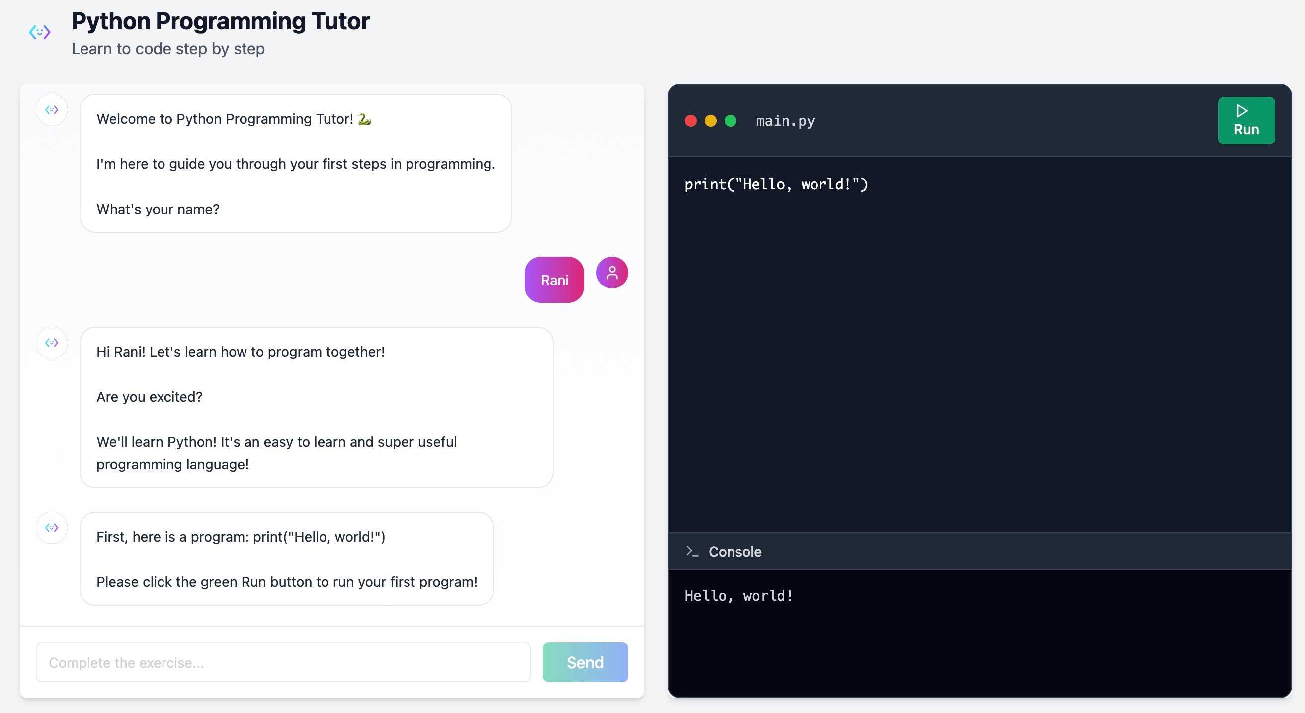 Step 3: Start learning with the AI tutor and write your first program in minutes
